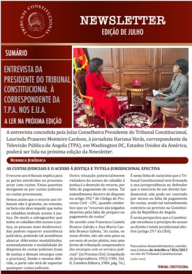 Partilhamos mais uma edição da Newsletter do Tribunal Constitucional, um espaço de partilha onde o leitor pode encontrar informações sobre os trabalhos desenvolvidos por esta Corte Superior, neste caso, ao longo do Mês de Julho.